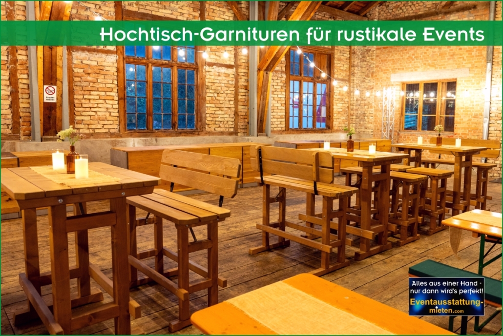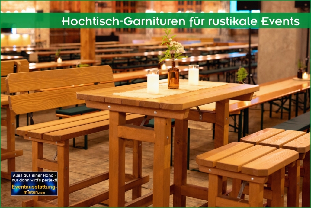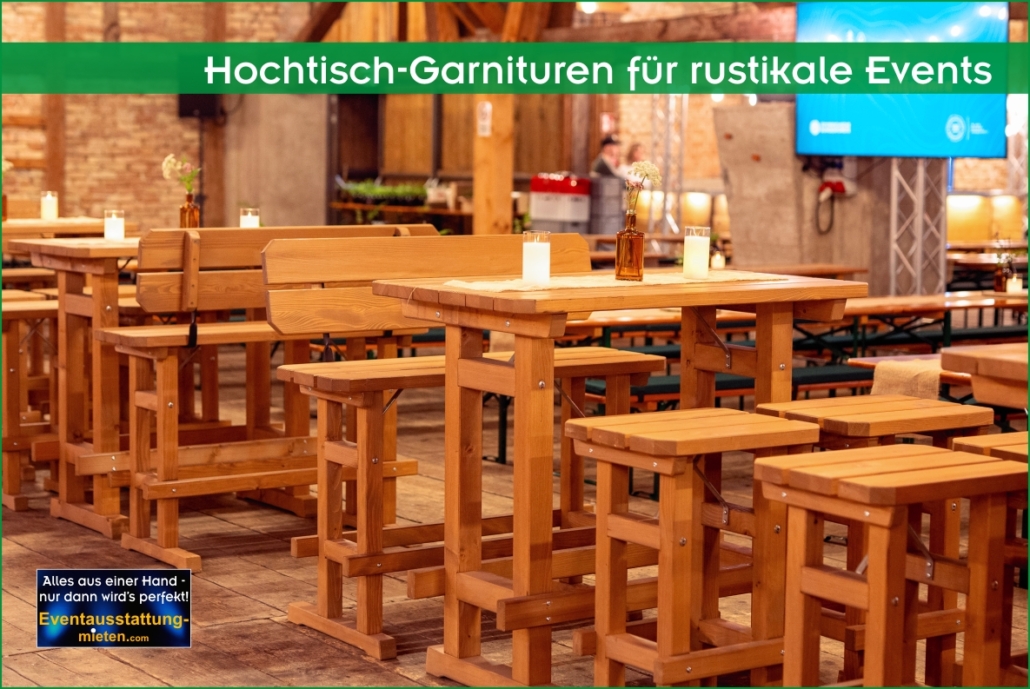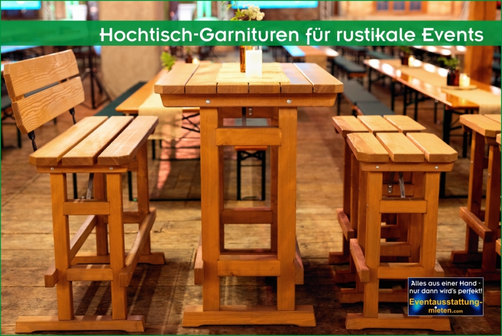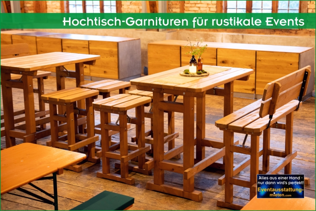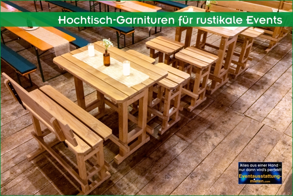 Rustiale Hochtische und Stehtische zum Empfang oder auf der Terrasse